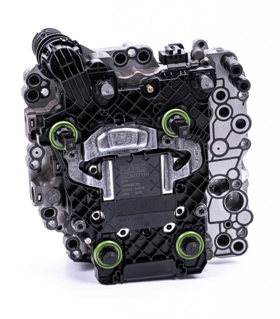 Mechatronic, Mechatronic-enhet, Mechatronikenhet, DSG-styrenhet, DSG-enhet, DSG-hydraulenhet, Växellådsstyrenhet, TCU, Transmission Control Unit, Hydraulmodul för DSG, Automatlådans styrenhet, Ventilhuskontroll för DSG